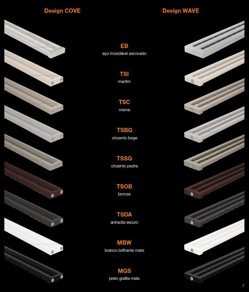 I profili di flusso della serie Schlüter-KERDI-LINE-VARIO possono essere combinati solo con i sifoni a imbuto Schlüter-KERDI-LINE-VARIO-H. Due coperture terminali incluse nel set.