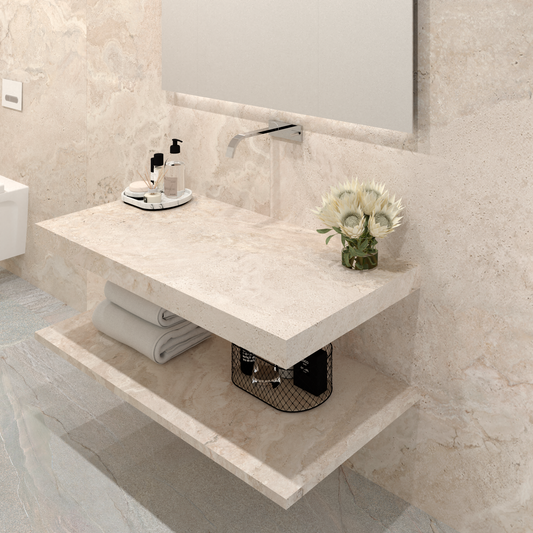 Bancada Reta Siena Linha Maximum com lavatório de Pousar no mesmo material