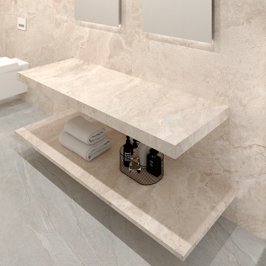 Bancada Reta Toscana Linha Maximum com Lavatório Duplo de Pousar no mesmo material