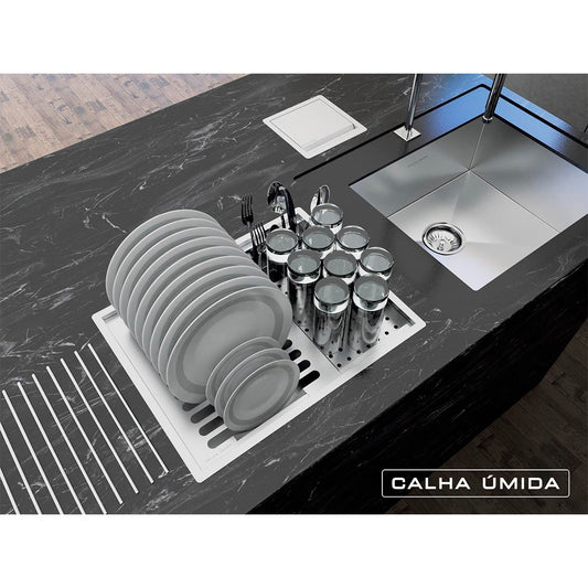 Kit Escorredor Sobrepor Calha Úmida Kitchen 6 Módulos 1530mm PT - AÇO 304