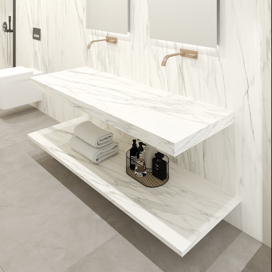 Bancada Reta Vicenza em Margres com furação para Lavatório Duplo de pousar