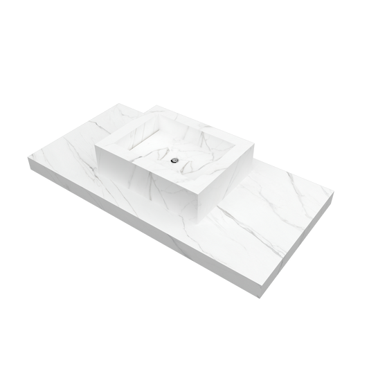 Bancada Reta Siena Linha Maximum com lavatório de Pousar no mesmo material