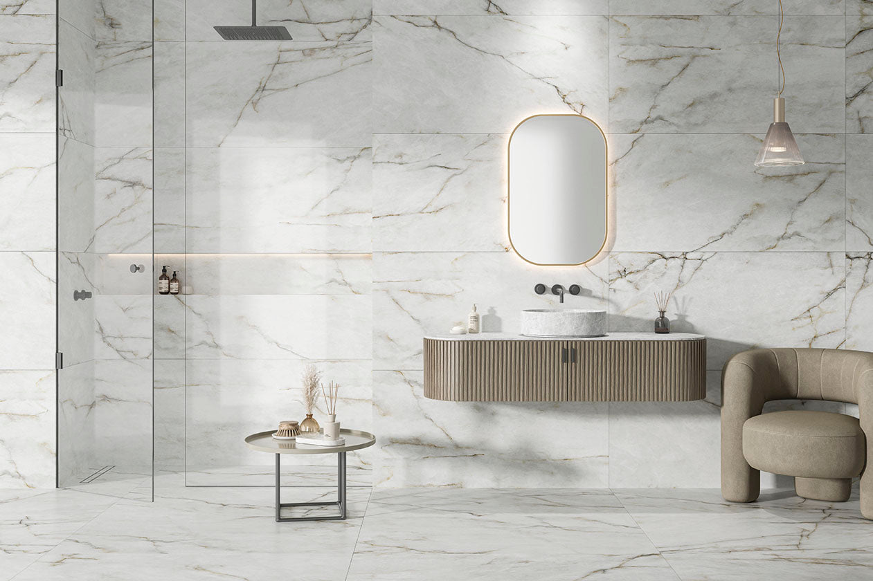 Pavimento Calacatta Cerâmico 10 mm - Placas vários formatos - Rocersa