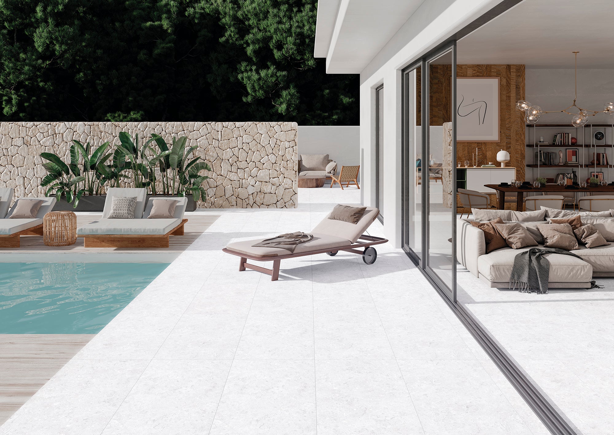 Concebida para ambientes interiores e exteriores em 10 mm e 20 mm nos formatos 20×120 cm RC, 25×150 cm RC e 29,5×120 cm RC OUTDOOR20; bem como em pasta branca 33×100 cm RC.
