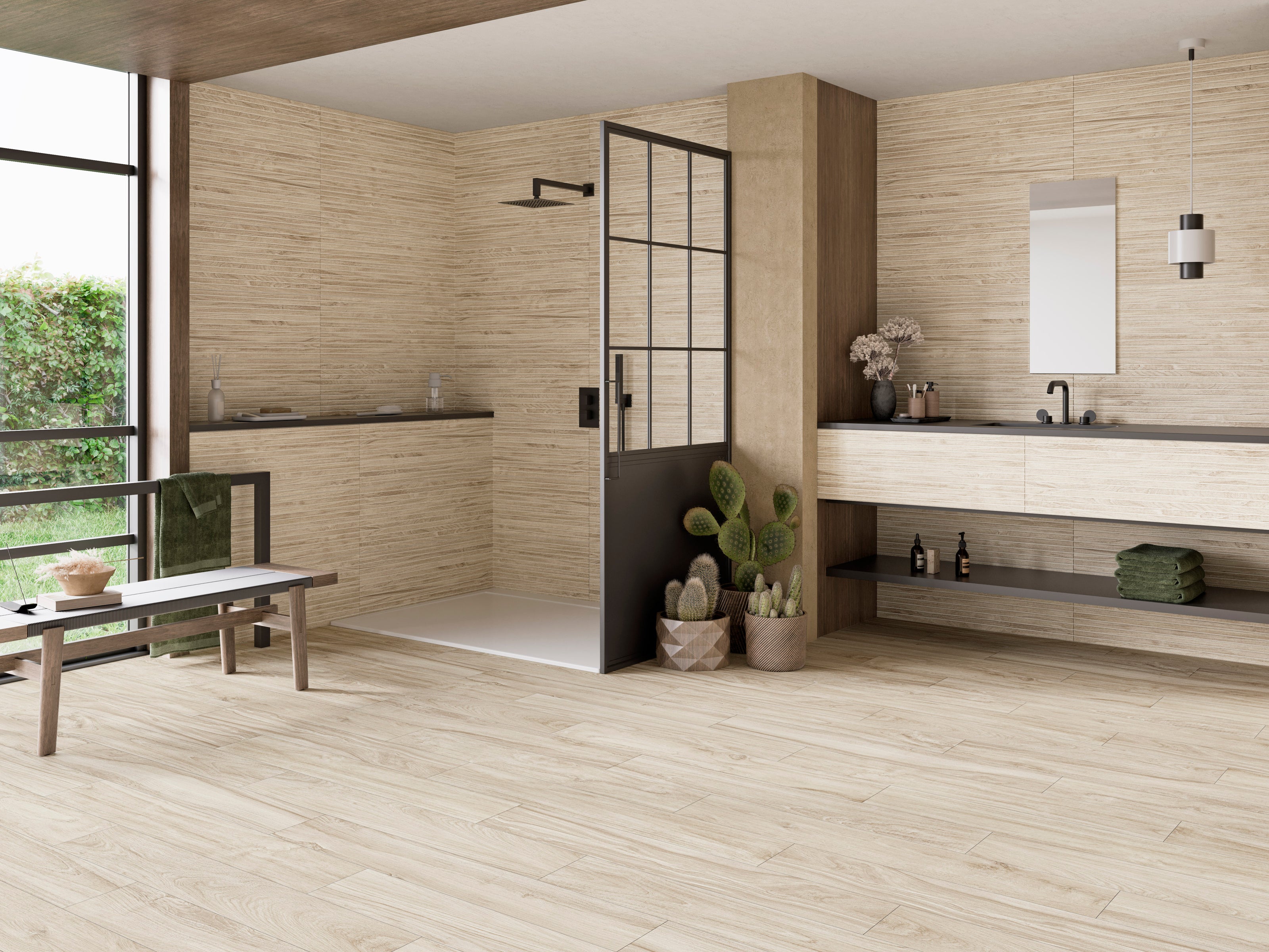 Bosland é sinónimo de firmeza e sobriedade. Uma coleção com efeito madeira em cerâmica extrafina que confere aos espaços um contraste no mais puro estilo minimalista.