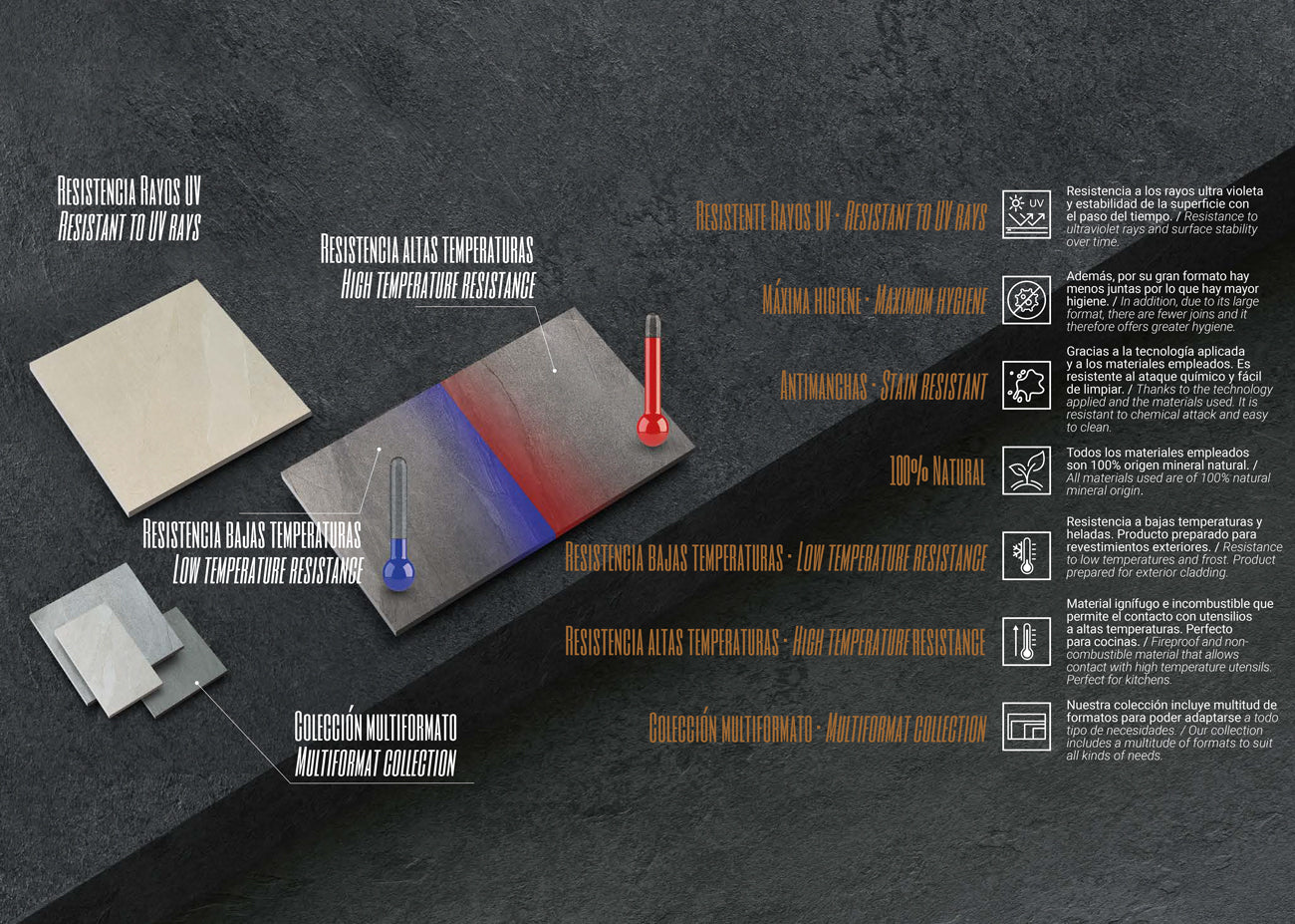 Offriamo un'ampia gamma di top, piani d'appoggio e lavabi in ceramica MAXIMUM e lastre sottili, personalizzabili in base alle vostre preferenze di colore e finitura. Il nostro sistema produttivo è perfetto per abbinarsi ai rivestimenti del vostro bagno e offriamo diverse dimensioni e modelli per adattarsi al meglio al vostro spazio e al materiale scelto. I nostri prodotti includono un sistema di fissaggio a parete e sono composti da un supporto tecnico e strutturale da 3 a 5 cm, su cui viene applicata la colla epossidica e successivamente incollati i rivestimenti. I nostri piani d'appoggio utilizzano rivestimenti di spessore 6 mm . I nostri top presentano inoltre caratteristiche di impermeabilità, isolamento termico e resistenza agli urti e all'umidità.