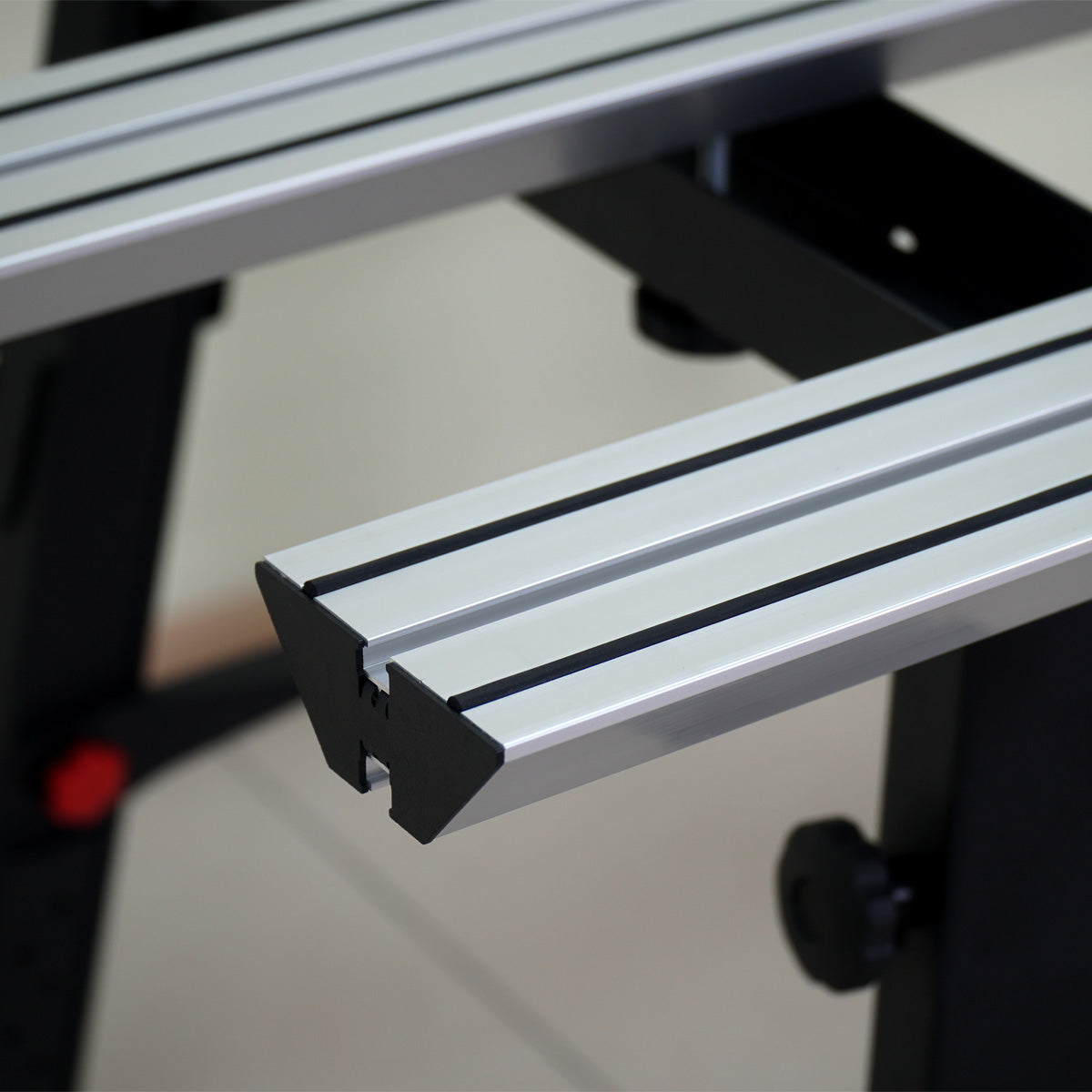 A mesa CeraMAX Telescope 2.0 possui uma função adicional de ajuste de altura. A faixa de ajuste é de 800-1200 mm. Além disso, a mesa pode ser colocada em ângulo, o que torna muito conveniente cortar e lixar lixas a 45 graus. Você pode trabalhar o dia todo sem fadiga desnecessária e tensão nas costas.