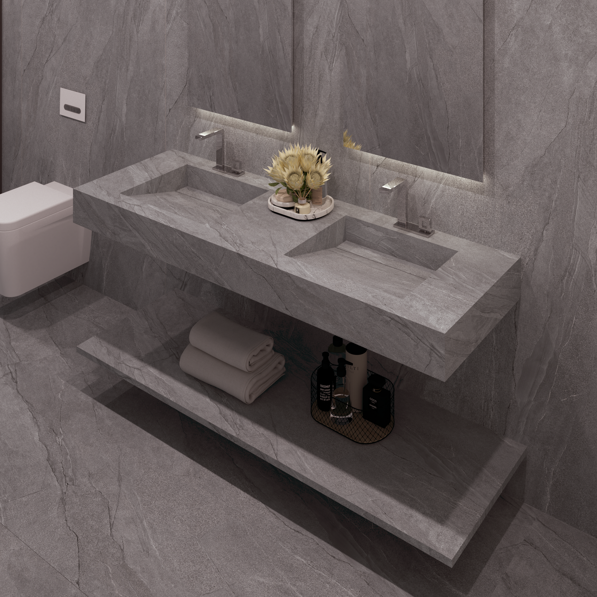 Oferecemos uma ampla gama de tampos, bancadas e lavatórios em MAXIMUM cerâmicos e laminas de baixa espessura, personalizados de acordo com suas preferências de cor e acabamentos. Nosso sistema de produção é perfeito para combinar com os revestimentos da sua casa de banho, disponibilizamos de diversos tamanhos e modelos para se ajustarem da melhor forma ao seu espaço e ao material escolhido. Os nossos produtos incluem sistema de montagem na parede e são compostos por um suporte técnico e estrutural de 03 a 05 cm, sobre qual é aplicada uma cola epóxi e posteriormente colado os revestimentos, em nossas bancadas são utilizados revestimentos com 6 mm de espessura. Nossos tampos também possuem características de impermeabilidade, isolamento térmico e resistentes ao impacto e umidades.