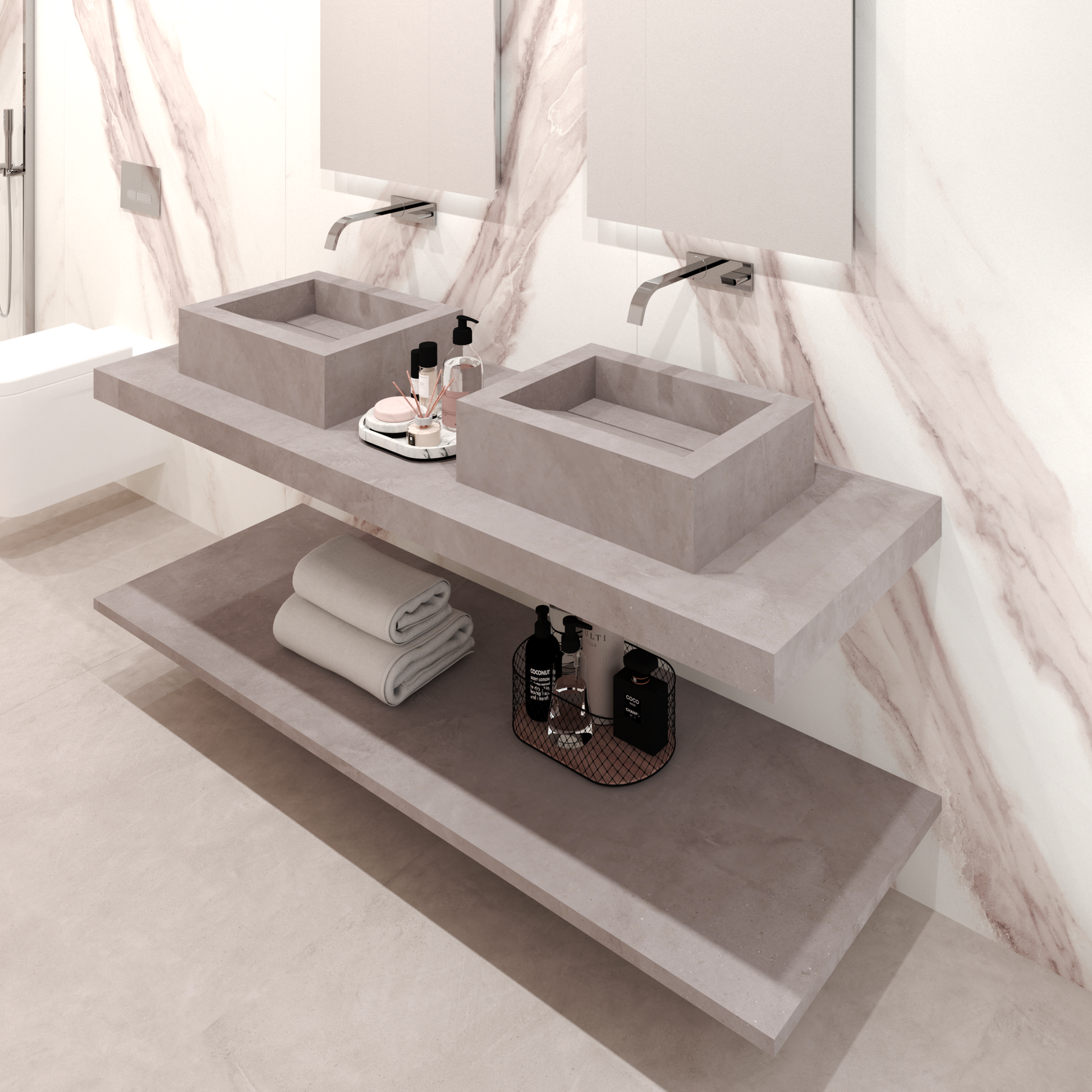 Oferecemos uma ampla gama de tampos, bancadas e lavatórios em MARGRES cerâmicos e laminas de baixa espessura, personalizados de acordo com suas preferências de cor e acabamentos. Nosso sistema de produção é perfeito para combinar com os revestimentos da sua casa de banho, disponibilizamos de diversos tamanhos e modelos para se ajustarem da melhor forma ao seu espaço e ao material escolhido. Os nossos produtos incluem sisitema de montagem na parede e são compostos por um suporte técnico e estrutural de 03 a 05 cm, sobre qual é aplicada uma cola epóxi e posteriormente colado os revestimentos, em nossas bancadas são utilizados revestimentos com 3,5/5,5/6 mm de espessura. Nossos tampos também possuem características de impermeabilidade, isolamento térmico e resistentes ao impacto e umidades.