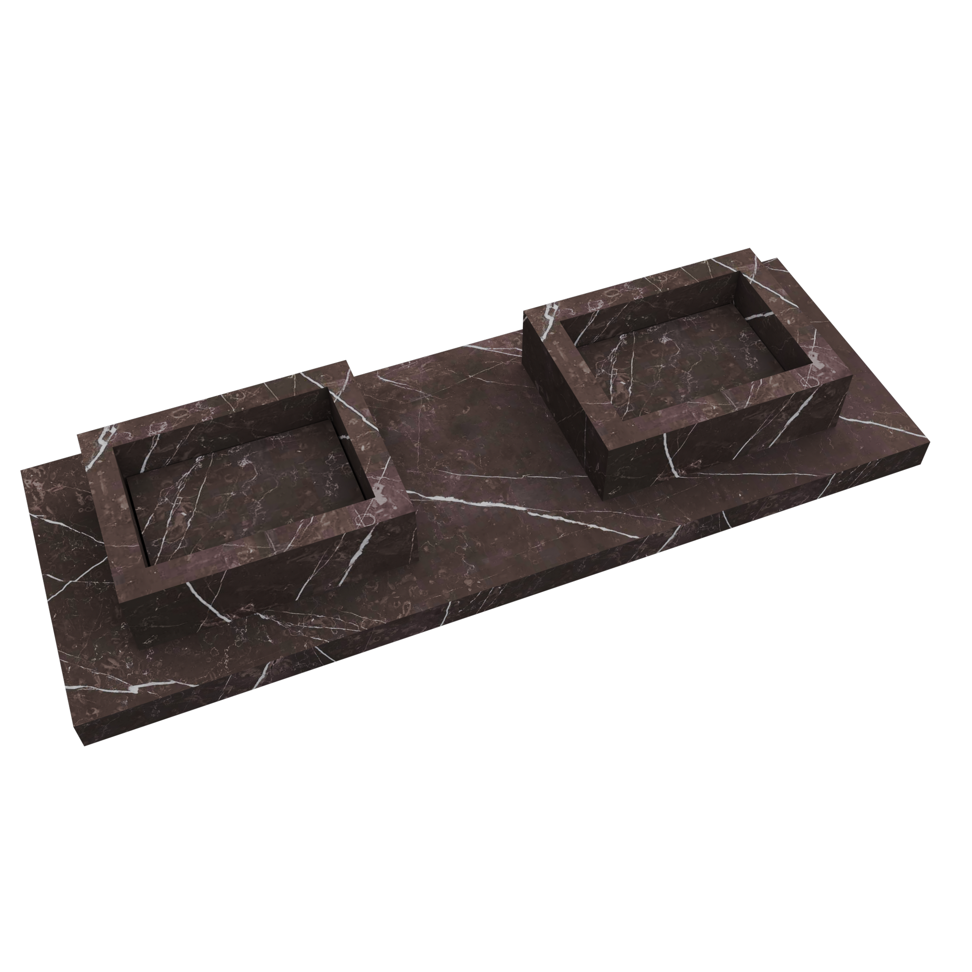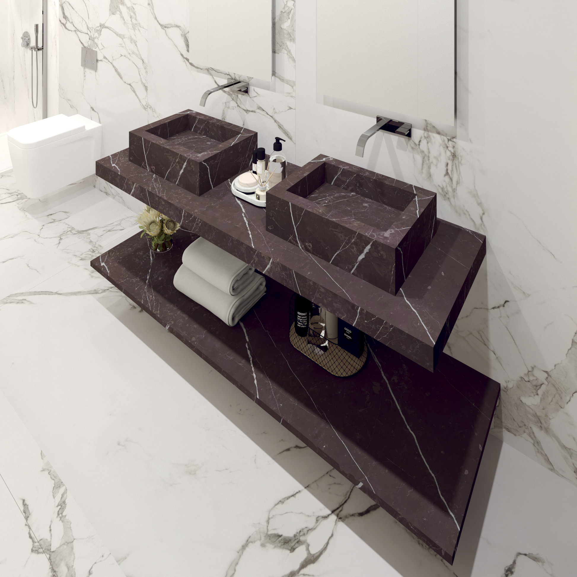 Bancada Reta Toscana em Margres com Lavatório Duplo de Pousar no mesmo material