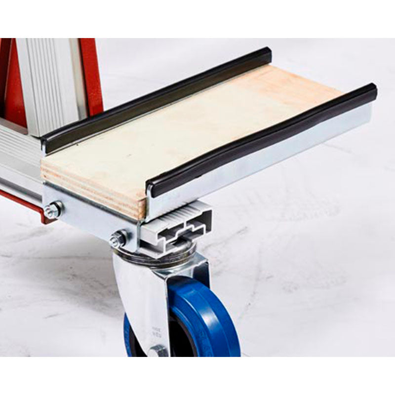 - Os planos de madeira com rebordos de borracha em ambos os lados do carrinho proporcionam um suporte seguro para os azulejos de grande formato.