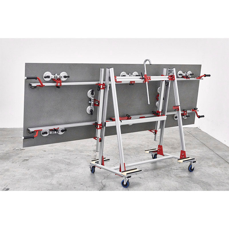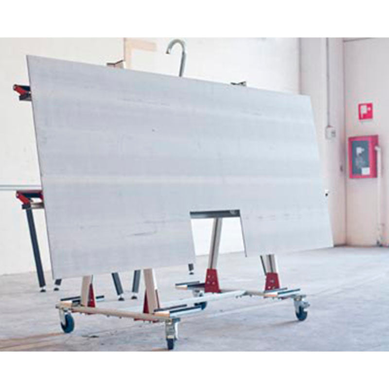 - Carro concebido para o transporte e a movimentação de azulejos de grande formato (por exemplo, 3200x1600x h 6 mm - 10,5x5,25/x h 15/32").