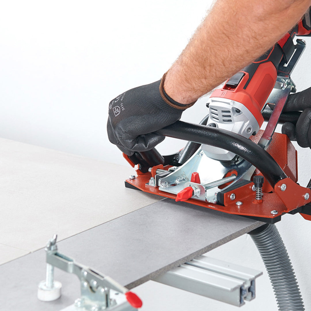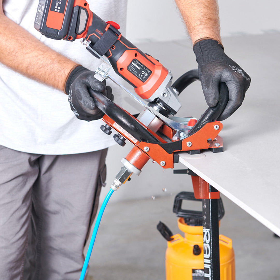 Este dispositivo pode ser usado a seco (ligado a aspirador) ou a água (com o kit para cortes a água art.433PWWA)
