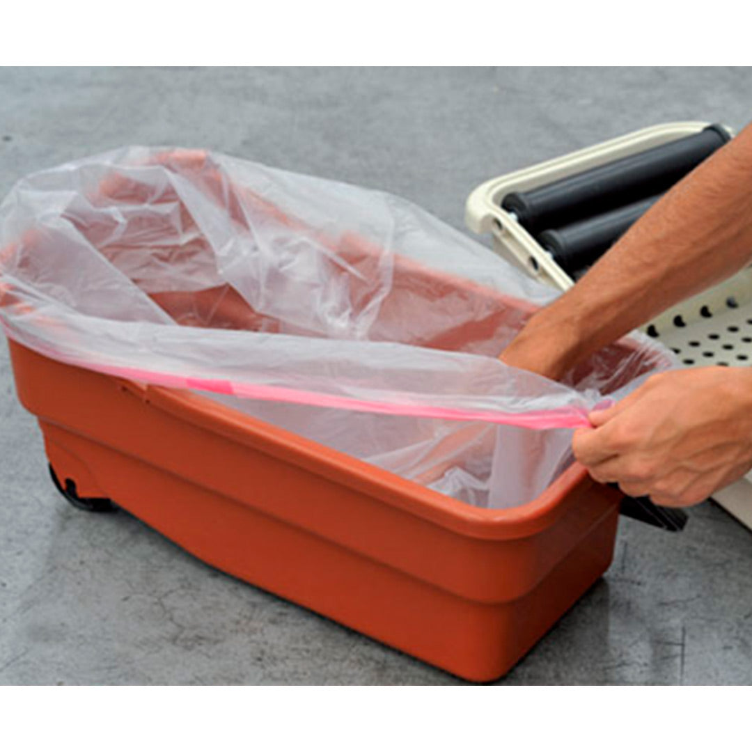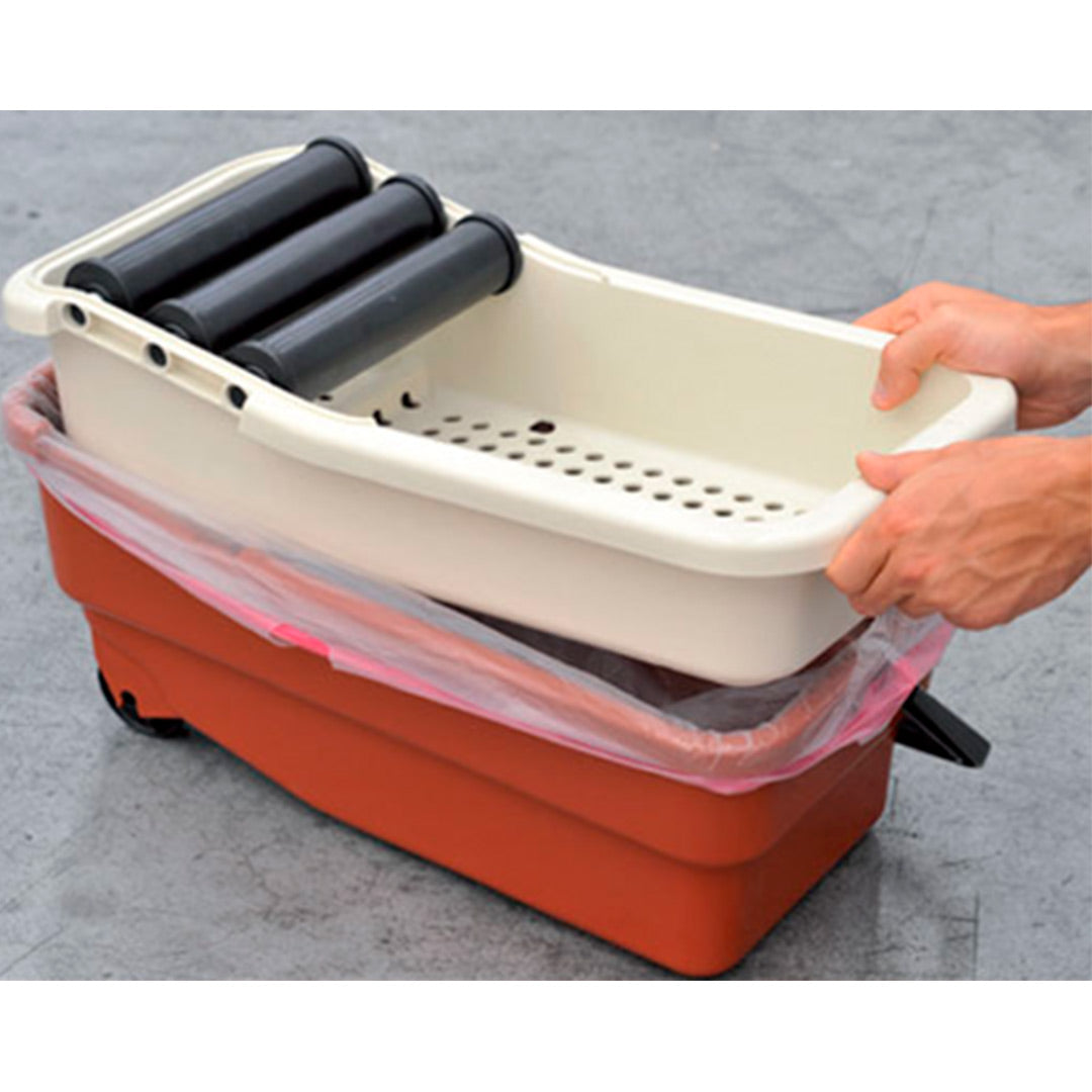 Balde de limpeza e acabamento de juntas em todo o tipo de pavimentos e revestimentos. Permite colocar um saco em plástico de forma que nele fiquem depositadas todas as sujidades retiradas.