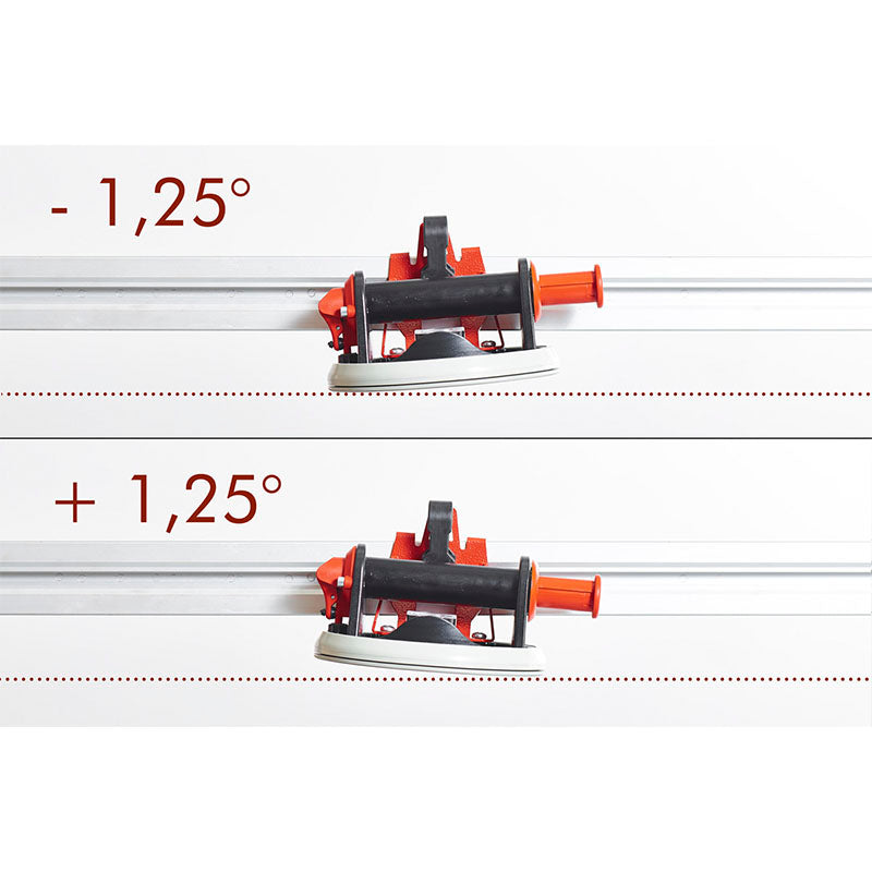 - Cada ventosa está equipada com uma bomba manual para criar vácuo, que é fornecida com um indicador que mostra quando a sucção está a perder aderência, bem como um botão de libertação para interromper imediatamente a sucção.