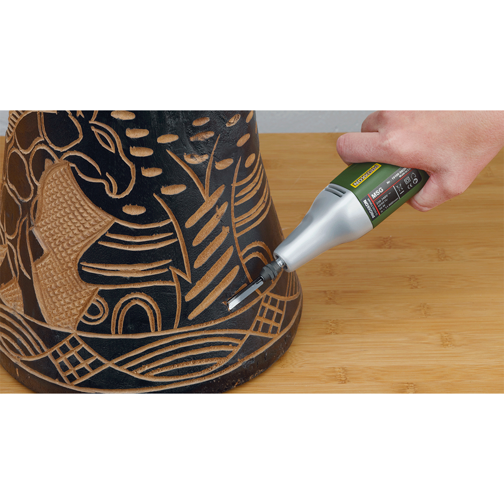 Motor especial balanceado, potente, silencioso e duradouro. Engrenagem planetária silenciosa em carcaça de alumínio fundido e controle de velocidade continuamente variável (eletrônica de onda completa) para velocidades baixas e constantes, mesmo durante alta pressão de contato. Carcaça principal de POLIAMIDA reforçada com fibra de vidro com componente macio.