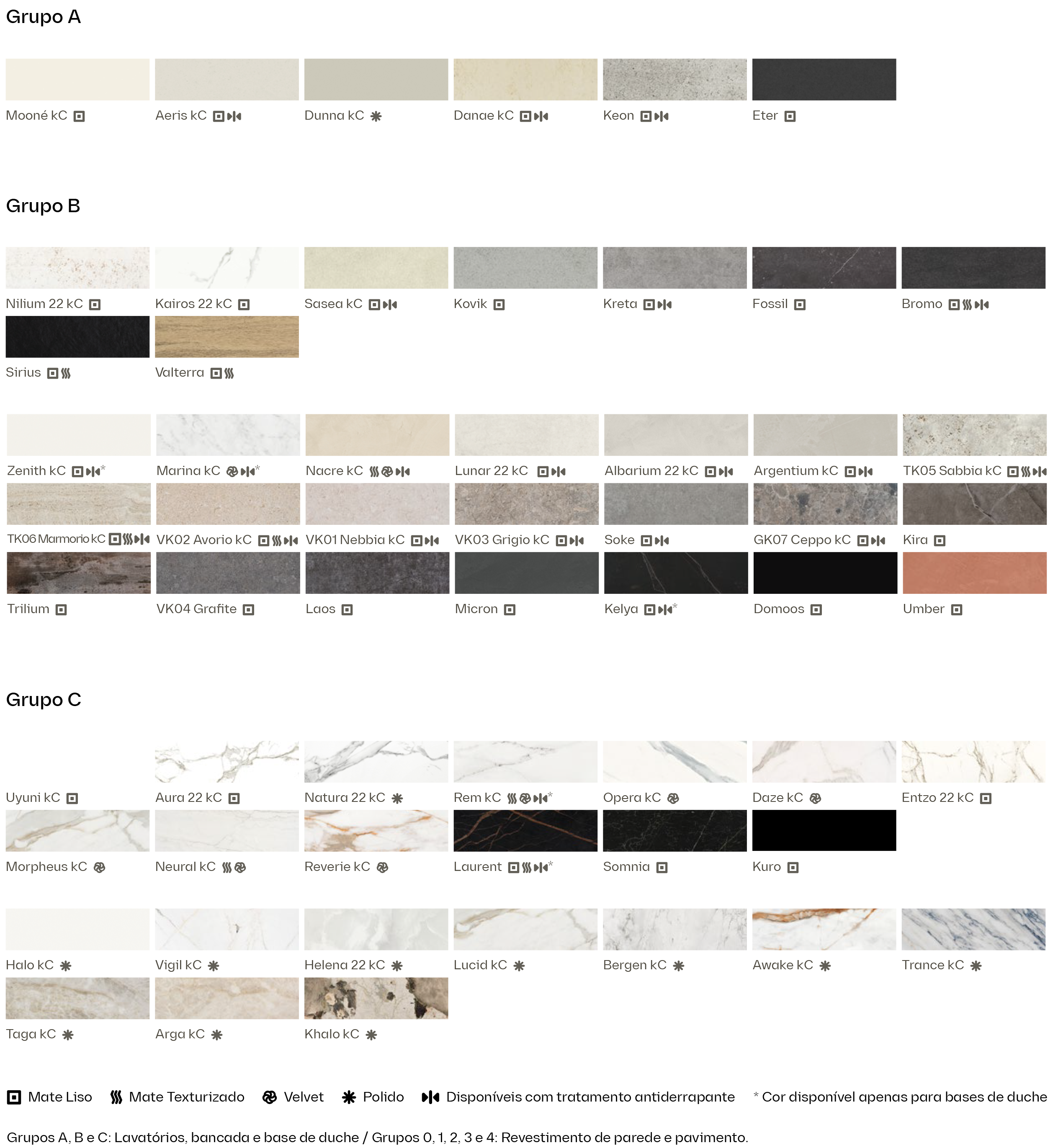 DEKTON, veja núcleos nas tabelas disponíveis abaixo