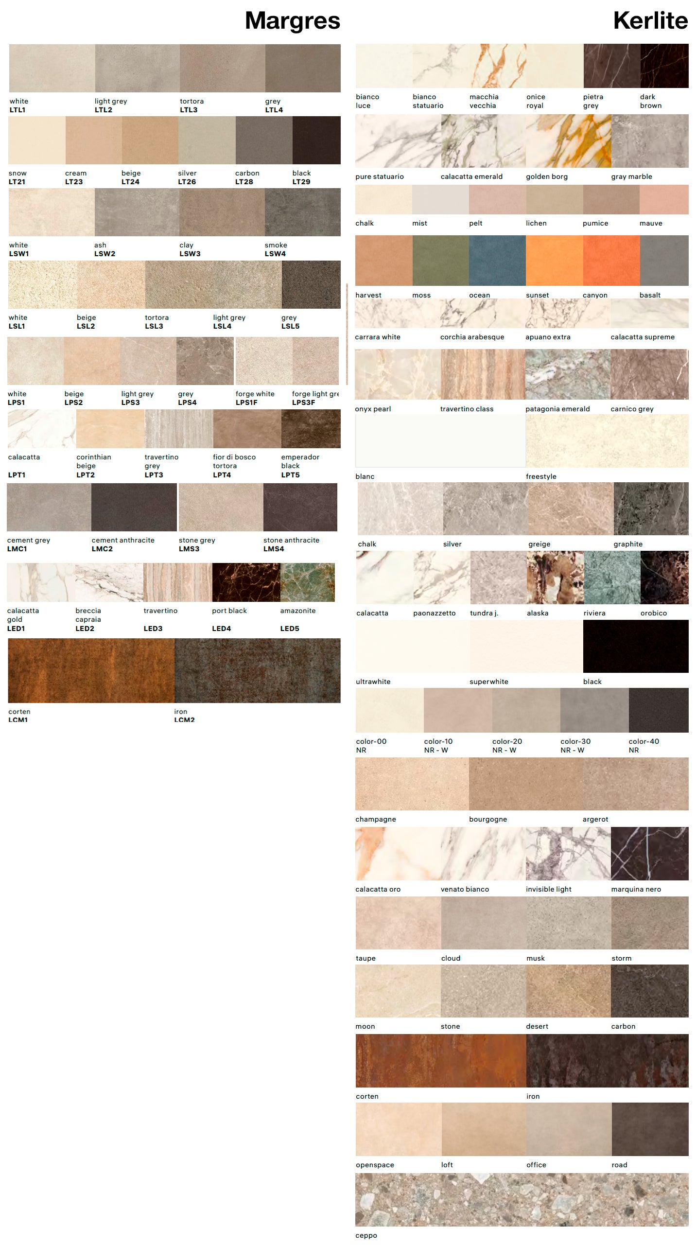 Oferecemos uma ampla gama de tampos, bancadas e lavatórios em MARGRES cerâmicos e laminas de baixa espessura, personalizados de acordo com suas preferências de cor e acabamentos. Nosso sistema de produção é perfeito para combinar com os revestimentos da sua casa de banho, disponibilizamos de diversos tamanhos e modelos para se ajustarem da melhor forma ao seu espaço e ao material escolhido. Os nossos produtos incluem sisitema de montagem na parede e são compostos por um suporte técnico e estrutural de 03 a 05 cm, sobre qual é aplicada uma cola epóxi e posteriormente colado os revestimentos, em nossas bancadas são utilizados revestimentos com 3,5/5,5/6 mm de espessura. Nossos tampos também possuem características de impermeabilidade, isolamento térmico e resistentes ao impacto e umidades.