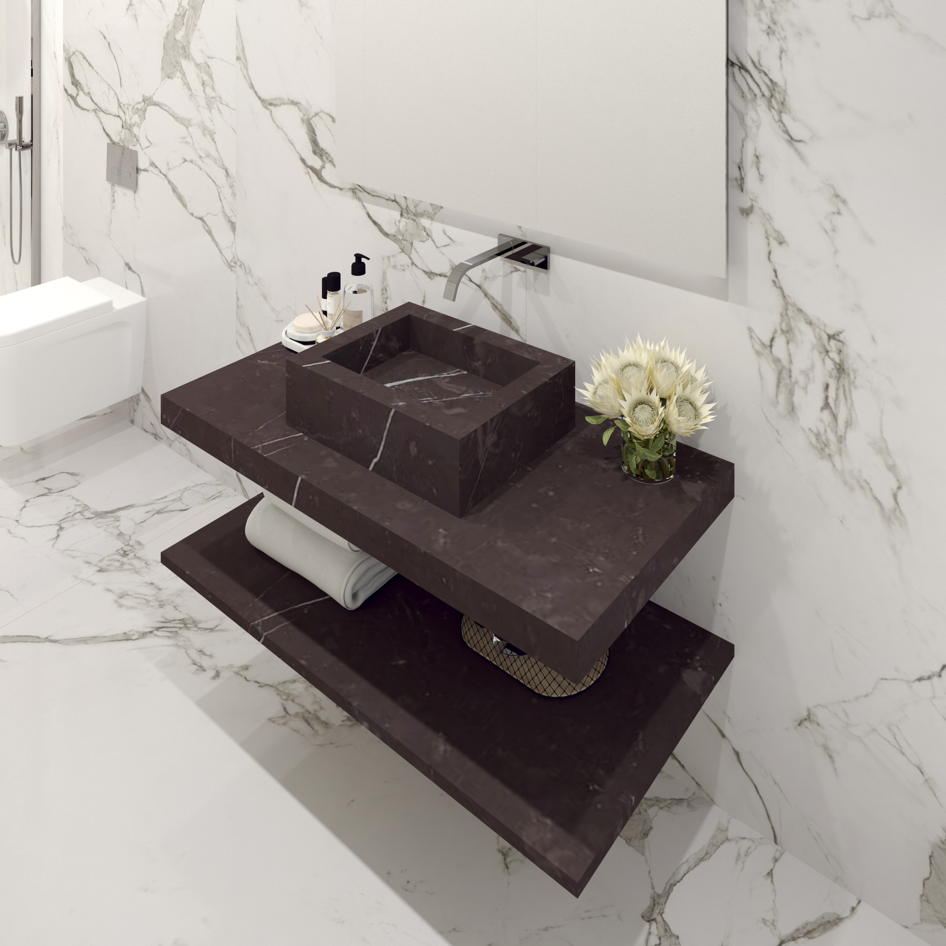 Observação: Ao adquirir nossa bancada, tenha a opção de adicionar uma prateleira inferior por um preço especial. As nossas prateleiras são projetadas para combinar perfeitamente com a bancada, proporcionando um espaço adicional elegante e prático para organizar seus produtos de higiene pessoal, toalhas e acessórios.