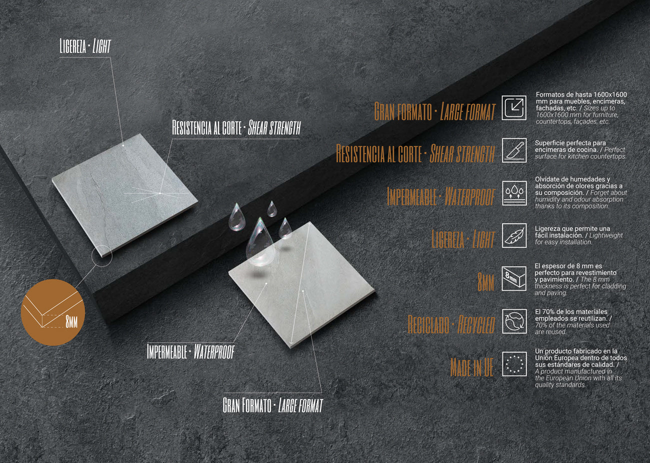 Oferecemos uma ampla gama de tampos, bancadas e lavatórios em MAXIMUM cerâmicos e laminas de baixa espessura, personalizados de acordo com suas preferências de cor e acabamentos. Nosso sistema de produção é perfeito para combinar com os revestimentos da sua casa de banho, disponibilizamos de diversos tamanhos e modelos para se ajustarem da melhor forma ao seu espaço e ao material escolhido. Os nossos produtos incluem sistema de montagem na parede e são compostos por um suporte técnico e estrutural de 03 a 05 cm, sobre qual é aplicada uma cola epóxi e posteriormente colado os revestimentos, em nossas bancadas são utilizados revestimentos com 6 mm de espessura. Nossos tampos também possuem características de impermeabilidade, isolamento térmico e resistentes ao impacto e umidades.