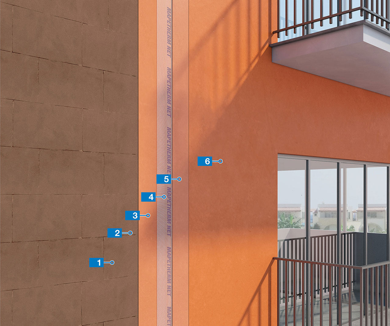 Rede em fibra de vidro resistente aos álcalis, de acordo com o teste ETAG 004, parágrafo 5.6.7.1, para a armação de membranas impermeáveis, antifratura e barramentos cimentícios, mesmo para o isolamento térmico pelo exterior Mapetherm System