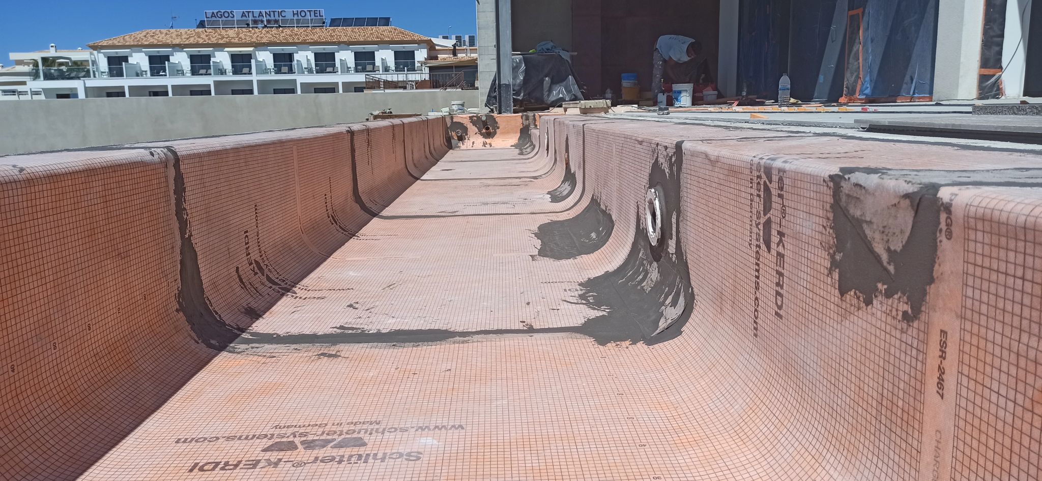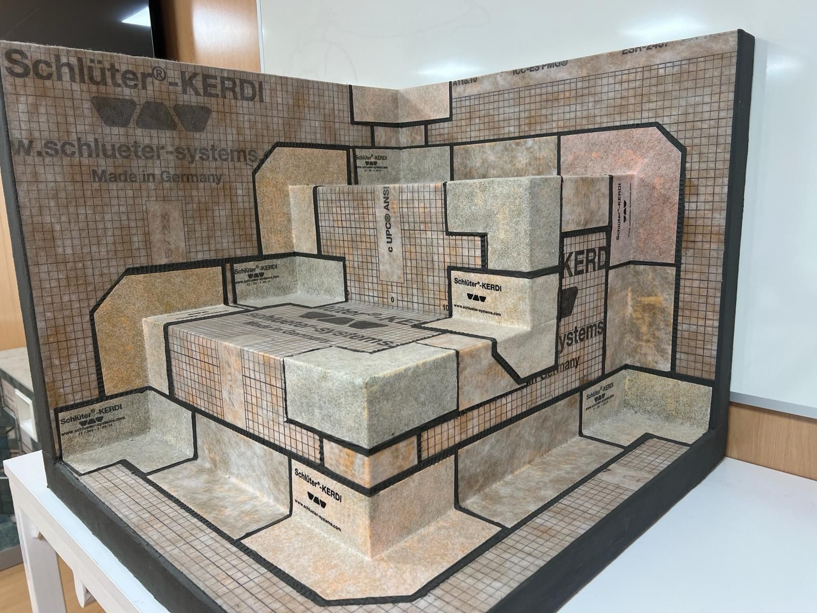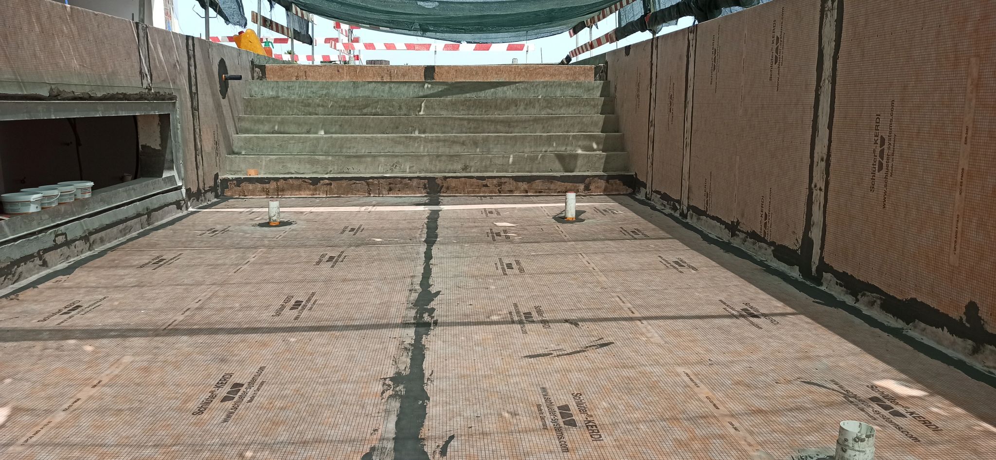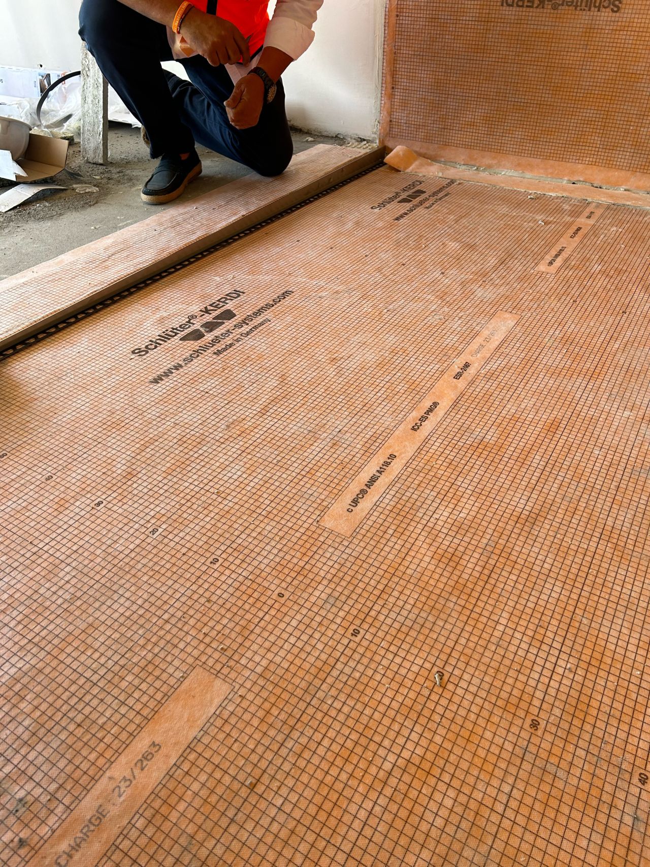 A Schlüter-DITRA em conjunto com revestimentos de cerâmica é utilizada como camada de impermeabilização, camada de compensação da pressão de vapor em caso de humidade proveniente da base e camada de desacoplamento de suportes problemáticos.