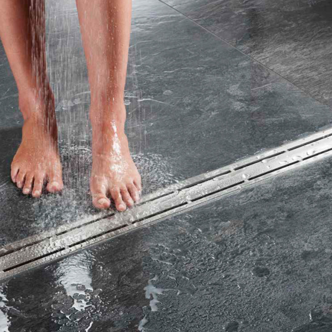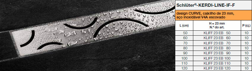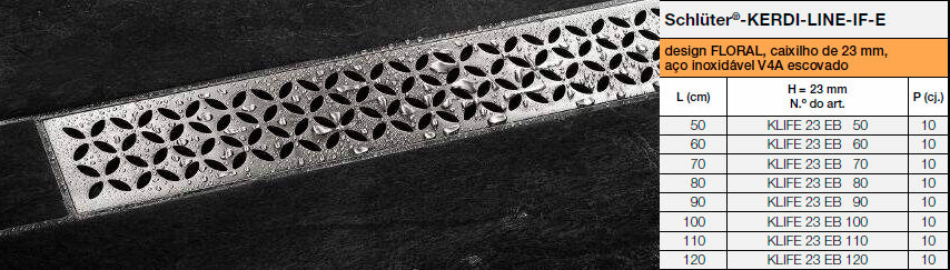 Os Schlüter®-KERDI-LINE são molduras de contorno em aço inoxidável escovado com coberturas de design adaptadas para os corpos de calhas do sistema Schlüter®-KERDI-LINE. A moldura de contorno estreito pode ser adaptado ao material de revestimento de 6 a 18 mm de forma contínua. As coberturas estão disponíveis nas variantes FLORAL, CURVE e PURE.