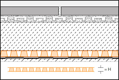 Os nódulos em forma de cones truncados estreitos são altamente resistentes e estão cobertos com um geotêxtil forrado permeável à água. Estes nódulos elevam o revestimento em toda a superfície, formando uma zona de